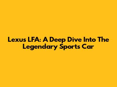 Lexus LFA: A Deep Dive Into The Legendary Sports Car
