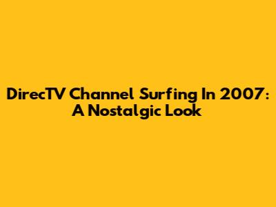 DirecTV Channel Surfing In 2007: A Nostalgic Look